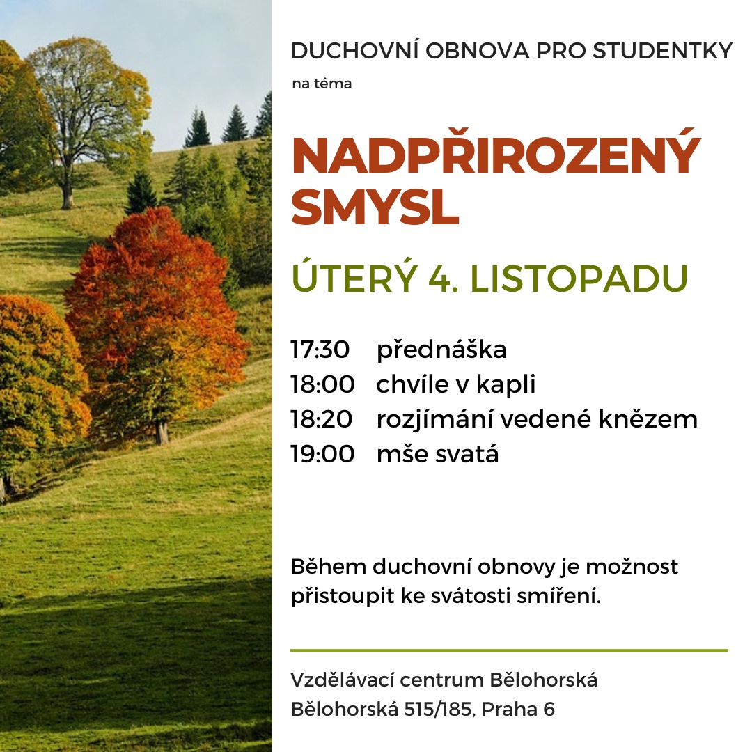 Příští duchovní obnova pro studentky se bude konat 4. 11. 2025 od 17:30.