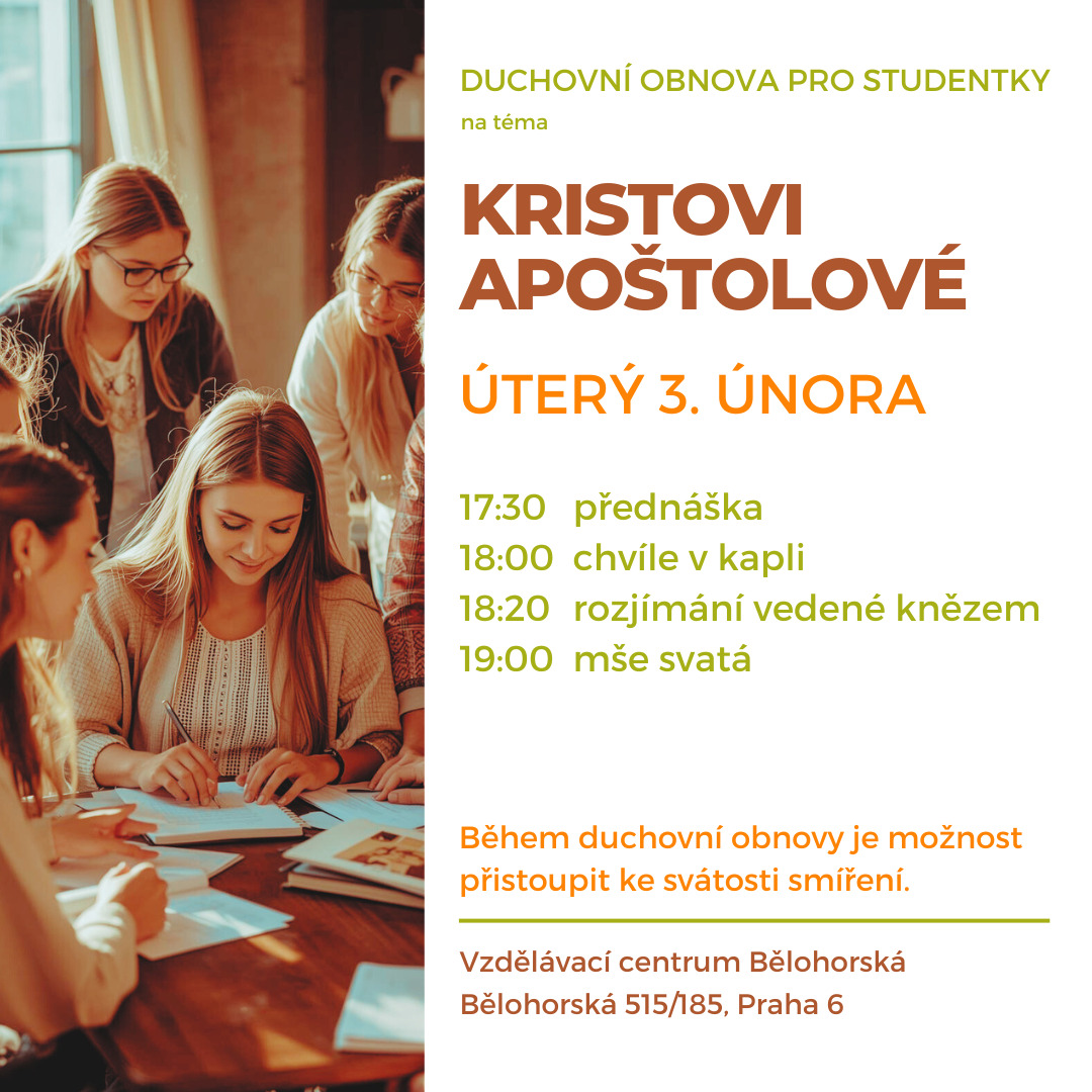 Příští duchovní obnova pro studentky se bude konat 2.12. 2025 od 17:30.
